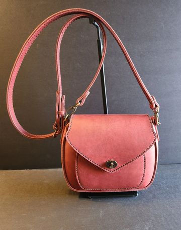 The Black Cherry Crossbody is the perfect accessory to add a touch of sophistication to any outfit. Made from luxurious leather, this handbag features a convenient handle and secure metal clasp. Elevate your style with this must-have accessory.