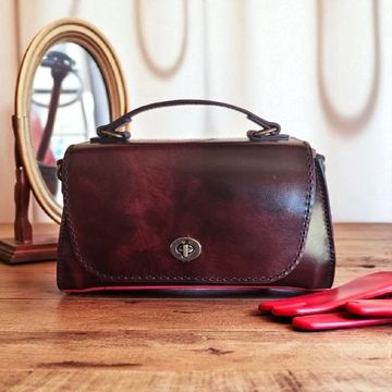 Crafted from luxurious purple leather with a chic turn-lock clasp, perfect for a sophisticated look.